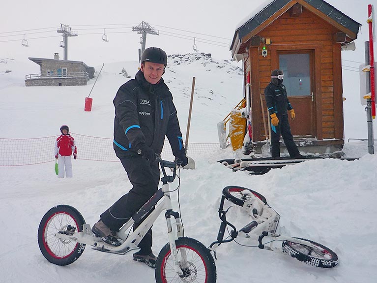 À 14h, après le repas, on a essayé le VTT des neiges, qui permet de dévaler les pentes enneigées de manière inédite. Plusieurs stations pyrénéennes ouvrent leurs pistes à ce sport original. Sensations fortes garanties !