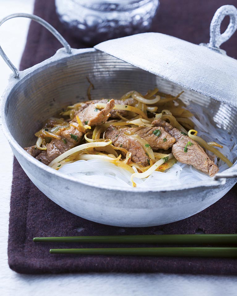 > Servez l’agneau aux oignons accompagné de vermicelles chinois ou d’un riz blanc.
