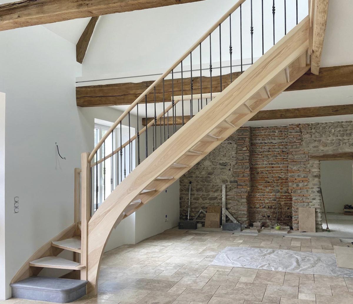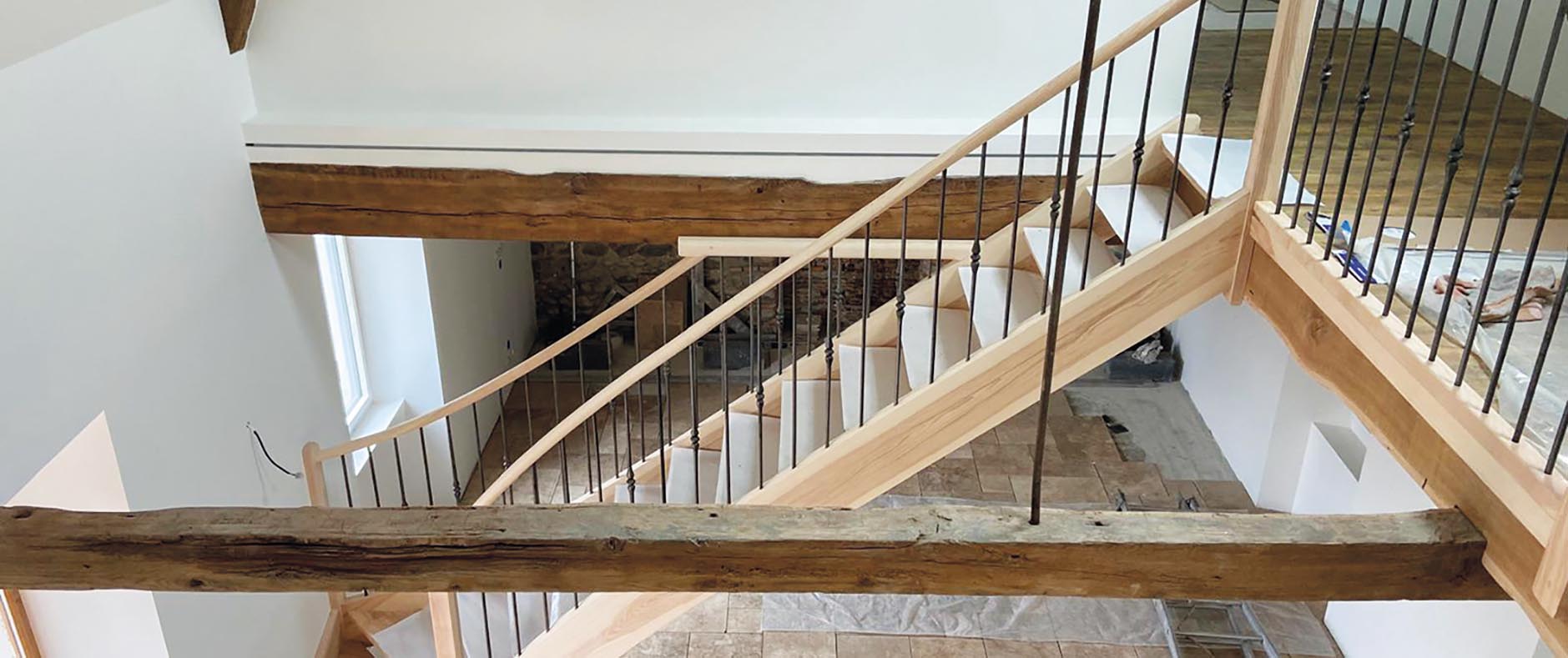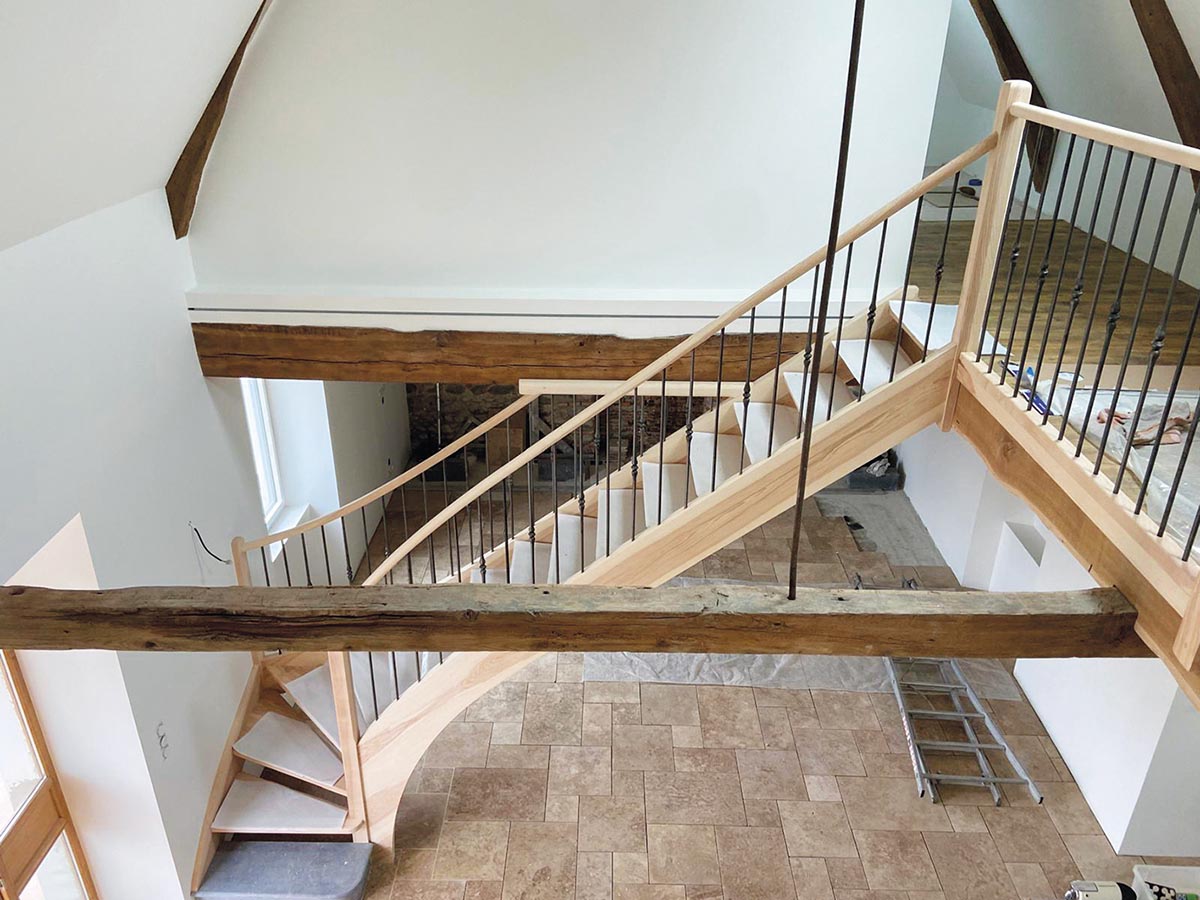 Cet escalier est un mélange de style et de caractère : les premières marches, taillées dans la pierre des Pyrénées, ancrent l’ouvrage dans le terroir, tandis que le bois massif en frêne-olivier apporte chaleur et noblesse. Chaque détail a été pensé pour s’harmoniser avec les poutres apparentes et les murs en pierre, contribuant à l’âme de cette demeure typiquement bigourdane. « C’est un projet mené main dans la main avec nos clients, affirme Didier Lapeyrade, gérant de l’entreprise. Ils ont su faire confiance à notre expertise pour magnifier leur intérieur ». Cet escalier n’est pas un escalier qui se contente de relier les étages : il raconte une véritable histoire, celle de l’artisanat, celle du terroir. Encore une magnifique réalisation signée AL Escaliers Création !