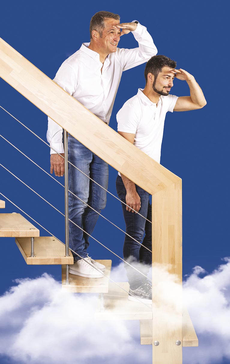 Le père de Didier Lapeyrade était artisan menuisier : « Il était très amoureux de son métier. J’ai travaillé avec lui après mon service militaire : on fabriquait des cuisines, des meubles, des escaliers »… C’est dans l’atelier familial que Didier a choppé le virus de l’escalier : il a développé une véritable passion. Il a ensuite travaillé plusieurs années pour une entreprise locale, puis il a repris l’atelier de son père quand ce dernier est parti à la retraite en 1999. « J’ai acheté un logiciel de design et je me suis lancé », se rappelle-t-il. Aujourd’hui, l’entreprise emploie 7 salariés ; elle est la seule dans le 65 à représenter la marque Treppenmeister, référence européenne des escaliers suspendus. Clément, 29 ans, est le fils de Didier ; il travaille aujourd’hui dans l’entreprise, où il gère notamment la conception, les devis et l’installation des escaliers suspendus. Demain, il reprendra le flambeau familial de l’entreprise : une affaire de famille, vous dit-on !