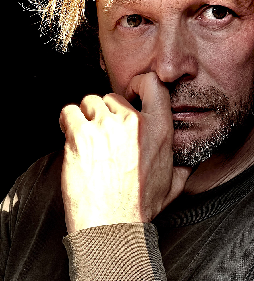 Andreï Molodkine est un artiste conceptuel né en 1966 à Bouï, une petite ville de l’ouest de la Russie. Il a débuté son parcours artistique après avoir servi dans l’armée soviétique, où il transportait du pétrole en Sibérie. Cette expérience a profondément influencé son travail : dans plusieurs de ses œuvres, il utilise le pétrole sous sa forme brute, comme dans l’installation Democracy où l’or noir circule dans chaque lettre du mot « Democracy ». Pour lui, le pétrole est « le sang noir », « le sang de la société moderne ». De manière générale, il utilise l’art pour critiquer les rapports de domination engendrés par le pouvoir. Ses œuvres ont été présentées dans des institutions prestigieuses à travers le monde, comme le Musée d’Art Moderne de Saint-Étienne ou la Tate Modern à Londres. L’art de Molodkine est très connecté au réel : il y a quelques mois, il s’est battu pour la libération de Julian Assange en menaçant de détruire, via une œuvre intitulée Dead Man’s Switch, plusieurs tableaux de maître si le lanceur d’alerte australien venait à mourir en prison. Les œuvres ont-elles été détruites ? « Non ! Assange est libre : ça a marché ! (rires) »