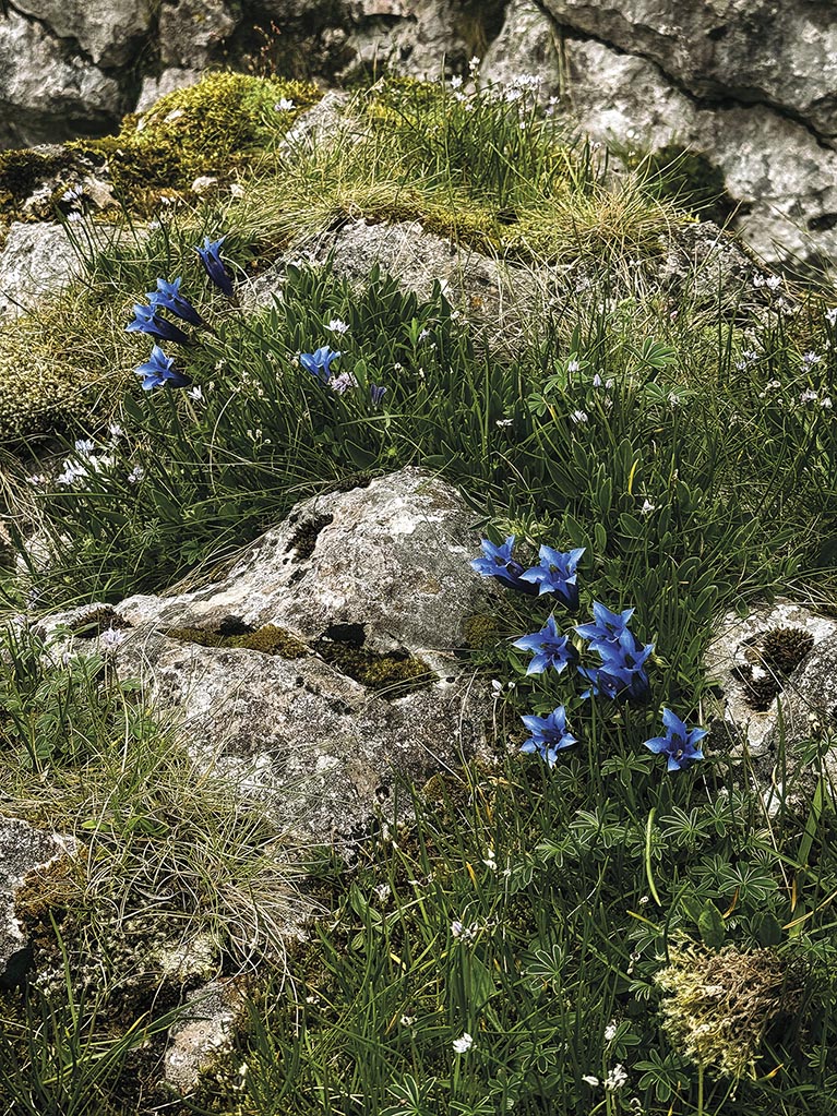 En route pour le cirque, donc. Que de fleurs, chers lecteurs ! Nous en avons vu tellement, et de si belles… Des primevères hirsutes, des gentianes, des populages, des anémones hépatiques… Puis nous sommes arrivés face à un névé. Un « névé », chers amis, est une langue de neige durcie qui peut se révéler problématique à franchir. Des randonneurs, croisés sur place, nous ont avertis : « C’est dangereux, mais ça passe ! »… Courageuse mais pas téméraire, la rédaction du Mag a la sagesse du randonneur qui cherche à éviter entorses et foulures : ne présumons pas de nos forces, et n’allons surtout pas au-devant du danger sans le matériel adéquat. Demi-tour.