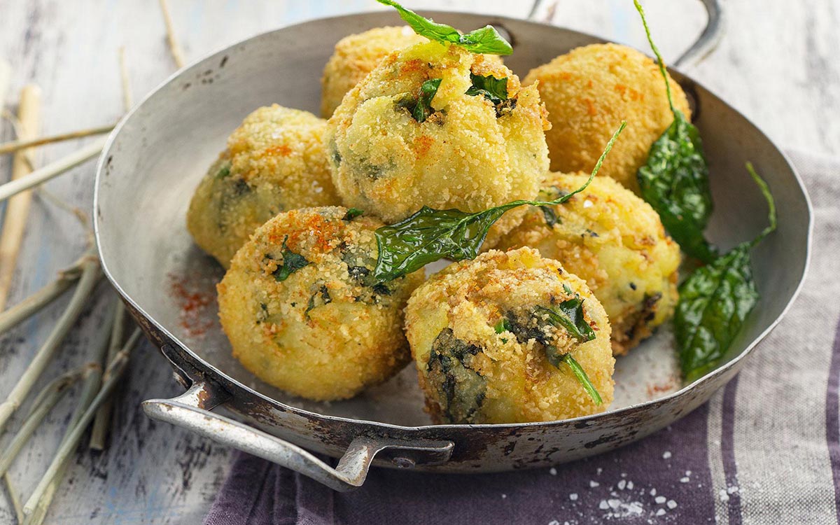 > Former des boulettes avec les pommes de terre écrasées en enfermant au centre 1 c. à c. de crème épinard.