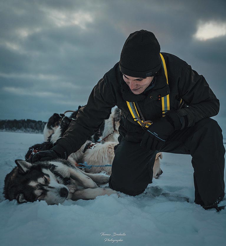 Clément a 24 ans. Après une enfance en région bordelaise, il a beaucoup voyagé ; aujourd’hui, il est principalement basé dans les Pyrénées, et travaille en tant que saisonnier dans une boucherie à Arrens-Marsous. Très tôt, il a développé une passion pour les terres glacées : « Depuis tout petit, je suis fasciné par le Grand Nord. À 18 ans, je savais que je voulais devenir musher (personne qui conduit un attelage de chiens de traîneau, NDLR) ; j’ai économisé et je suis parti dans un chenil en Laponie pendant six mois pour me former bénévolement ». Quelques années plus tard, il est revenu en Laponie pour travailler comme guide d’expéditions hivernales ; après avoir conduit des dizaines de touristes, il réalise aujourd’hui son rêve : partir en solitaire pour s’immerger en pleine nature sauvage.