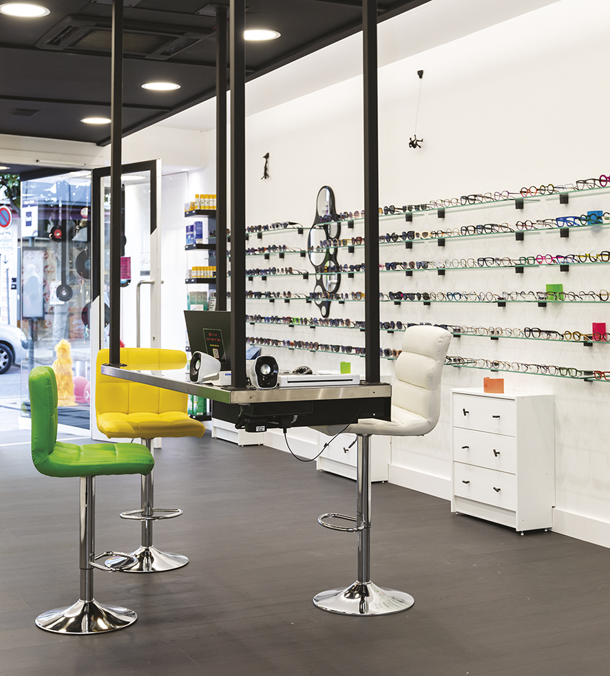 Le changement est manifeste : la boutique a fait peau neuve de A à Z, à commencer par la devanture noir et blanc qui apporte une touche de peps à la rue Maréchal Foch. À l’intérieur, on respire : ce relooking intégral a permis de gagner en largeur, et le magasin est à présent plus spacieux et aéré. Les murs blancs font habilement ressortir les couleurs des lunettes, et le sol noir, combiné aux tables suspendues, donne un ton à la fois très moderne et élégant. « Tous les travaux ont été réalisés en douze jours par Christophe Dussau des menuiseries Dussau », précise David. Le relooking permet de mettre encore plus en valeur les vitrines atypiques créées par David, qu’il change régulièrement pour le plaisir des passants.