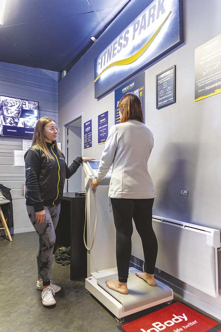 Pour le premier point, nos adhérents font l’objet d’un bilan offert dès leur inscription. Cela consiste à prendre une trentaine de mesures physiologiques à l’aide d’un impédancemètre médical de type INBODY 770 avant d’avoir un premier entretien avec un coach sportif et un second avec la diététicienne. Nous avons ainsi la connaissance des objectifs de la personne, de ses antécédents médicaux, de ses habitudes alimentaires, de ses contraintes. Cela nous permet d’orienter avec elle ses futurs exercices et de lui donner des recommandations en termes de nutrition. Car les résultats attendus viendront de l’association sport-nutrition. Par la suite, la disponibilité des coachs dans les espaces permet de la conseiller, de corriger ses postures, de répondre à ses questions : il ne s’agit pas de mettre simplement une centaine de machines ou d’installations à leur disposition. À titre d’exemple et nous en sommes très fiers, nous avons des adhérents en position de handicap. Nous nous orientons vers le sport-santé. Un mois après, l’adhérent passera un nouveau test pour réajuster son entraînement en fonction des résultats. Notre satisfaction est l’atteinte de ses objectifs.