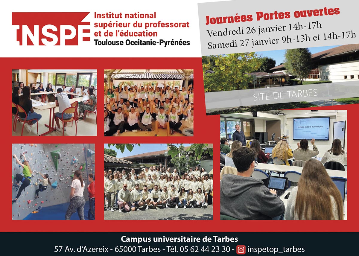 Le site INSPÉ Tarbes est une composante de la structure INSPÉ Toulouse Occitanie Pyrénées ; il forme les étudiants au métier de professeur des écoles (Master 1 et 2).
