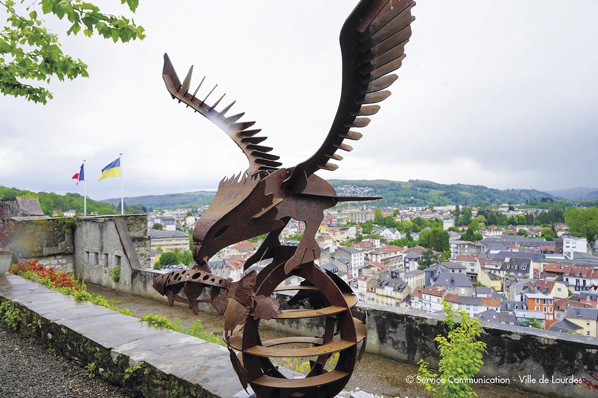 Sculpté par Jean-Claude Sanna, L’Aigle de la Paix trône depuis mai dernier sur les hauteurs du Château-Fort de Lourdes. Cette œuvre singulière s’inspire d’une vieille légende lourdaise. Le Mag mène enquête.