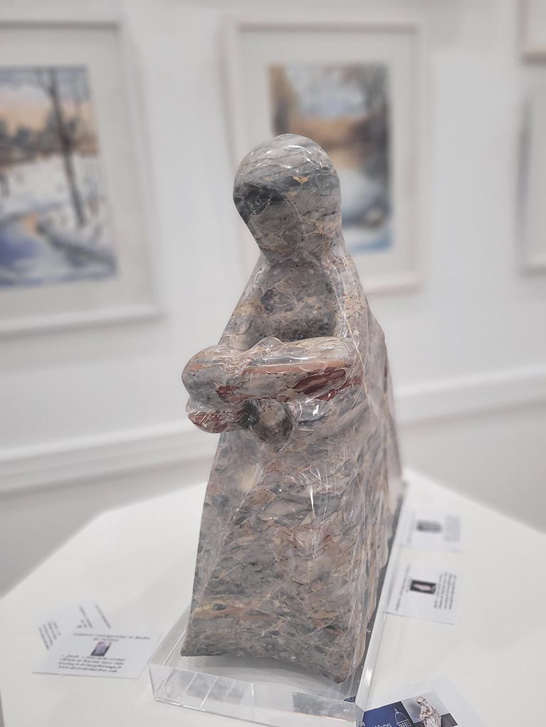 Jean-Jacke Lorinet sculpte le marbre des Pyrénées depuis une trentaine d’années : « Avant, je sculptais la pierre des Charentes, une pierre douce, tendre, que l’on peut travailler avec des ciseaux à bois ». Pourquoi avoir changé pour le marbre ? « J’ai eu besoin de me dépenser, me défoncer la tête et le corps, et j’ai commencé à travailler le marbre car c’est très physique. Aujourd’hui, ça l’est beaucoup moins parce que le matériel permet de travailler plus aisément, mais quand j’ai commencé… c’était au marteau et au burin ! ».