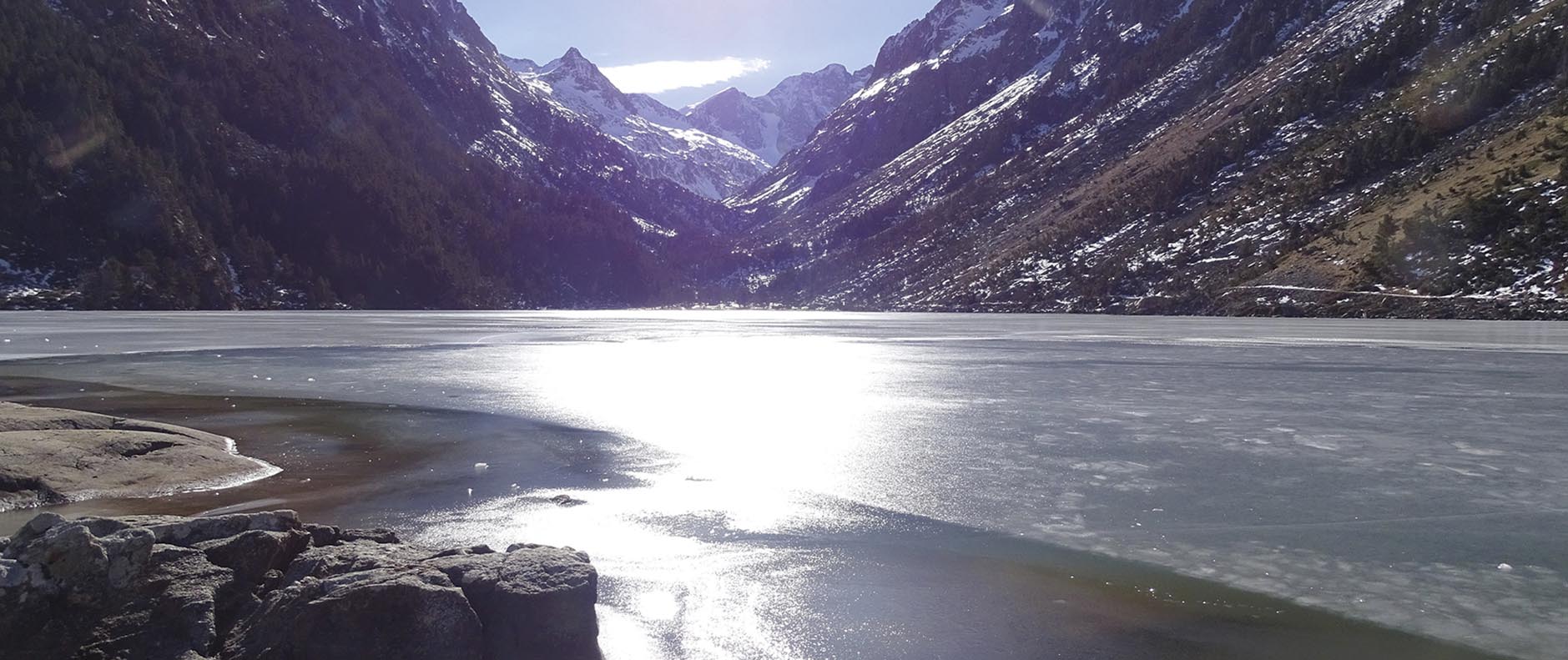 Départ de la balade : Cauterets, Pont Napoléon. Avant de démarrer, le Mag tient à se renseigner sur le Web : que signifie « Gaube » ? D’après Wikipédia, ça veut dire « lac » en gascon. Plaît-il ? « Lac de Gaube » veut donc dire « lac du lac » ? Oui, tout à fait ; ça n’a pas de sens, nous sommes d’accord, et ça porte même un nom, c’est un « toponyme pléonastique ». Ah ! Voilà qu’on apprend des mots, la journée commence bien ! Allez, en route, pas le temps de traîner : la balade est relativement courte, mais il faut redoubler de vigilance, car à certains endroits le sol gelé s’est transformé en véritable patinoire. Va falloir faire gaffe.
