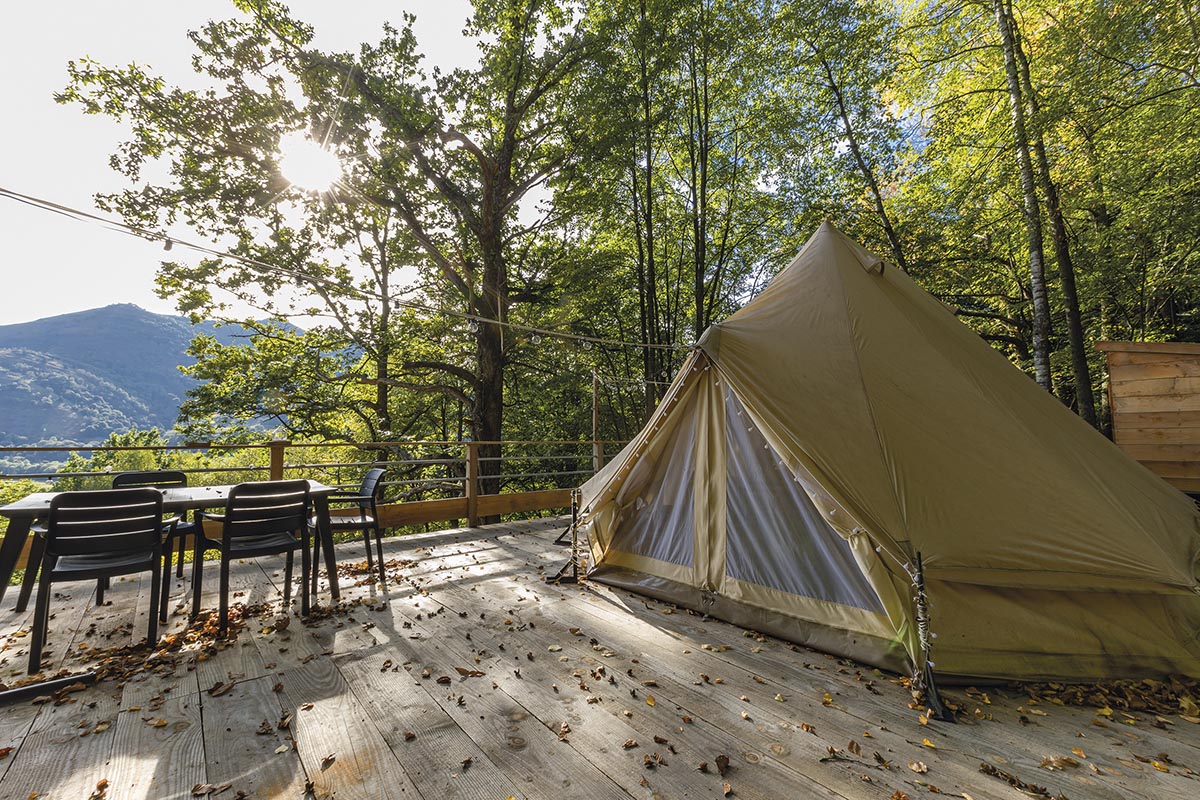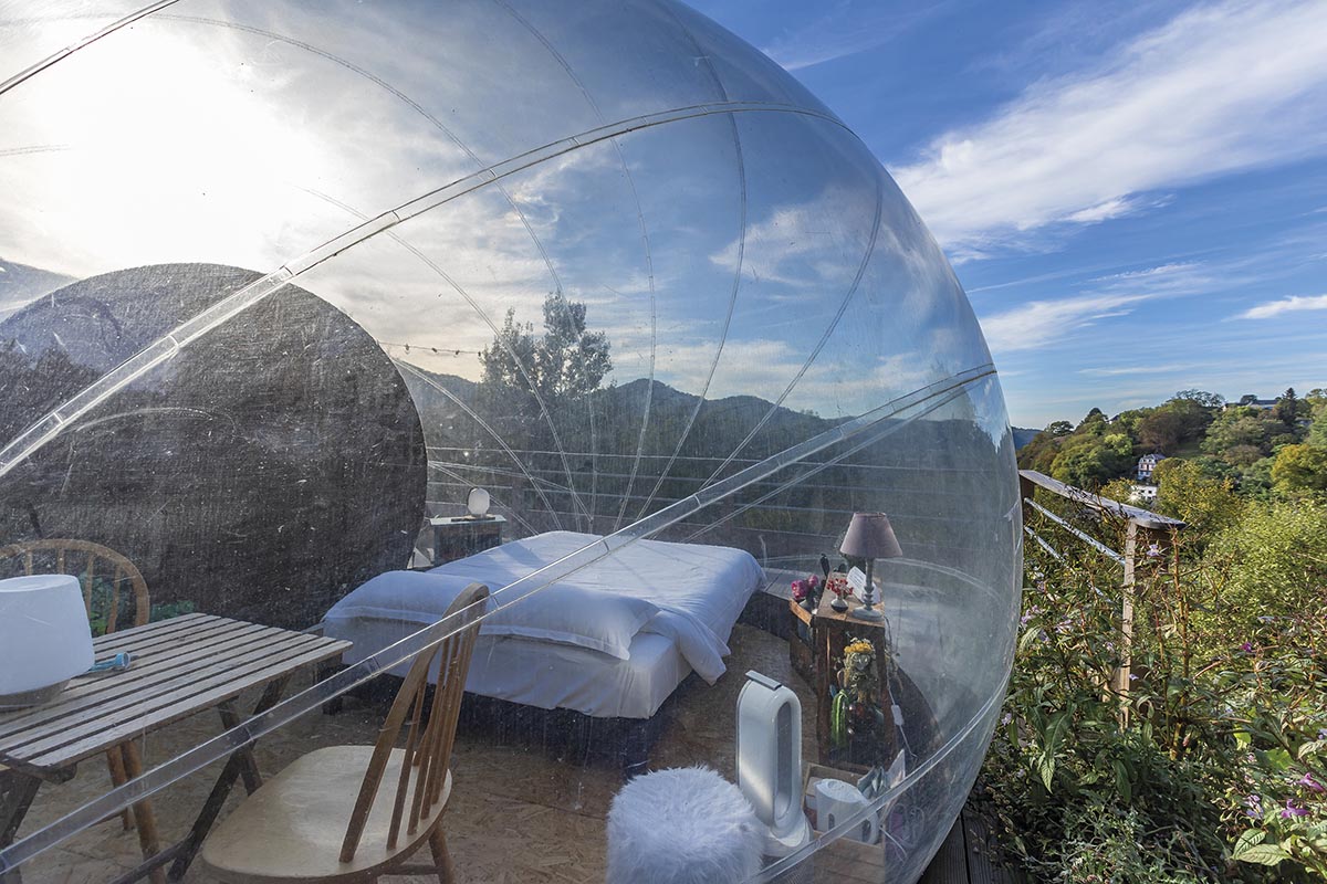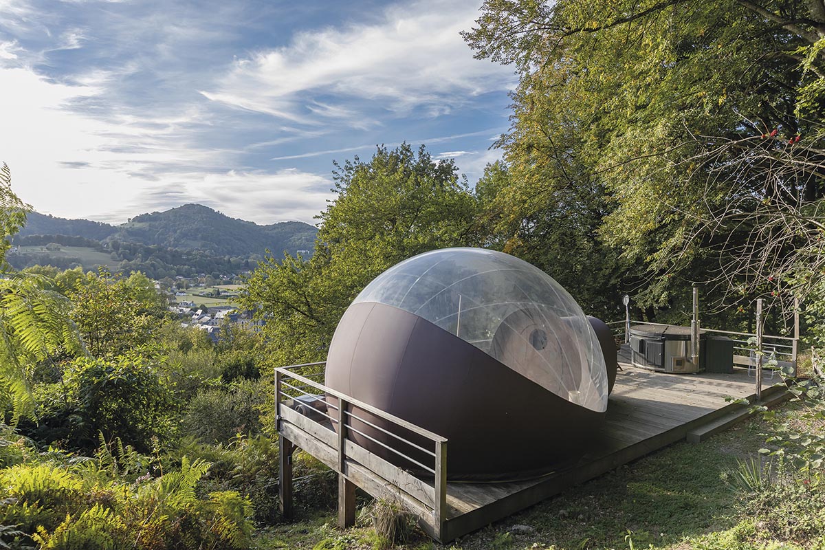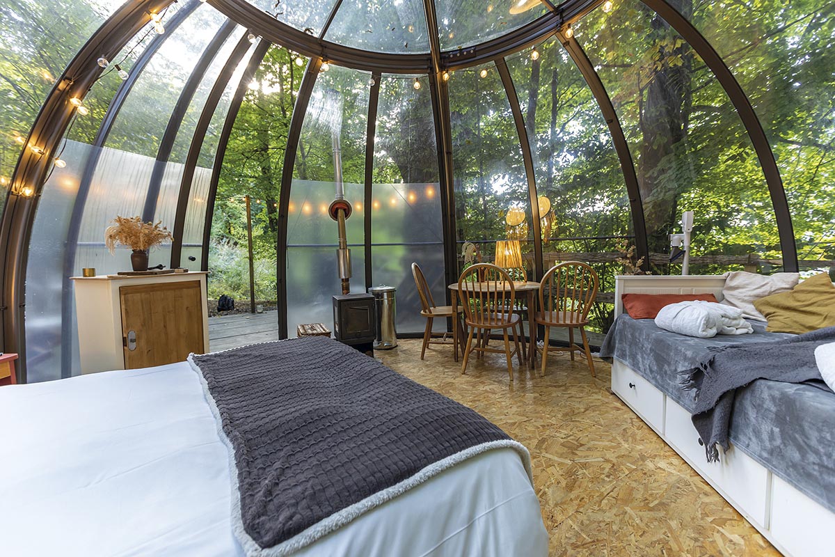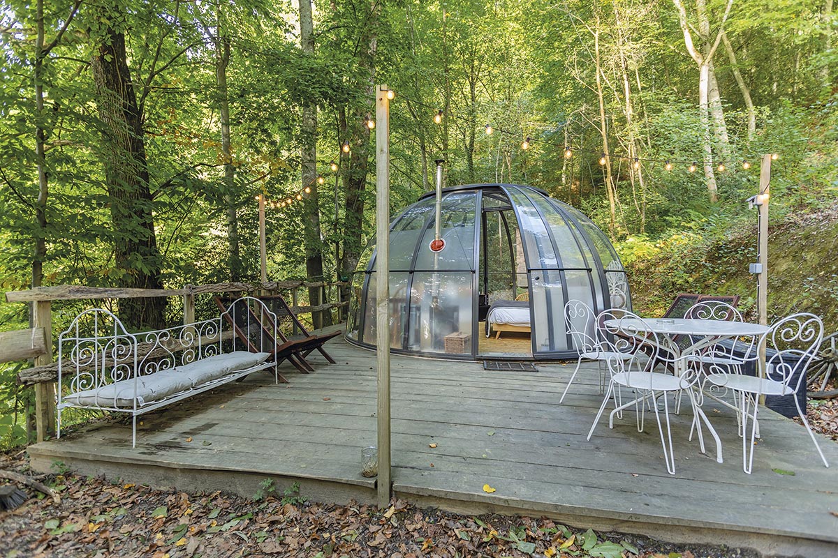 Très prochainement, le Perchoir aura le plaisir de vous accueillir dans son tout dernier logement, la Canopée : « C’est un nouveau dôme totalement transparent pour deux personnes, détaille Élodie. Il est ouvert toute l’année et dispose d’un bain nordique (bain chaud chauffé au feu de bois, NDLR) privatif en terrasse ». Idéale pour les couples, la Canopée sera disponible dans le courant de l’hiver pour vous faire vivre une expérience à nulle autre pareille. Si vous souhaitez prendre un bain nordique en louant le Pigeonnier, la Tente Cocon ou le Dôme Transparent, un bain en épicéa est accessible en option, avec des créneaux privatifs à réserver.