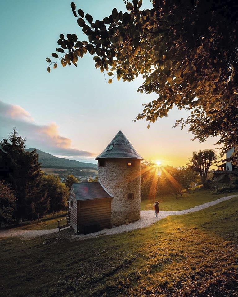 Avez-vous déjà pris un bain nordique en plein air au pied des massifs montagneux, sous la lune de novembre ? Vous êtes-vous déjà endormis à la belle étoile dans un Dôme tout confort, entièrement transparent et équipé d’un poêle, après avoir mangé une excellente raclette des Pyrénées et bénéficié d’un massage aux pierres chaudes ? Tout cela, et bien plus encore, vous pouvez le vivre au Perchoir. Cet endroit original possède une histoire particulière : « C’est un domaine familial, explique Élodie Waegebaert, gérante des lieux, avec en son cœur la maison où j’ai grandi et où vivent mes parents ». Bien qu’isolés en pleine nature, vous risquez de croiser pas mal de monde lors de votre visite : des chevaux, des chèvres naines, des moutons nains et un âne nain se baladent tranquillement autour du Pigeonnier, cette jolie petite tourelle en pierres qui est l’un des trois logements ouverts en saison hivernale. « Tout a été réalisé en famille, on a fait la grande majorité des travaux nous-mêmes avec mon conjoint et mes parents », raconte Élodie.
