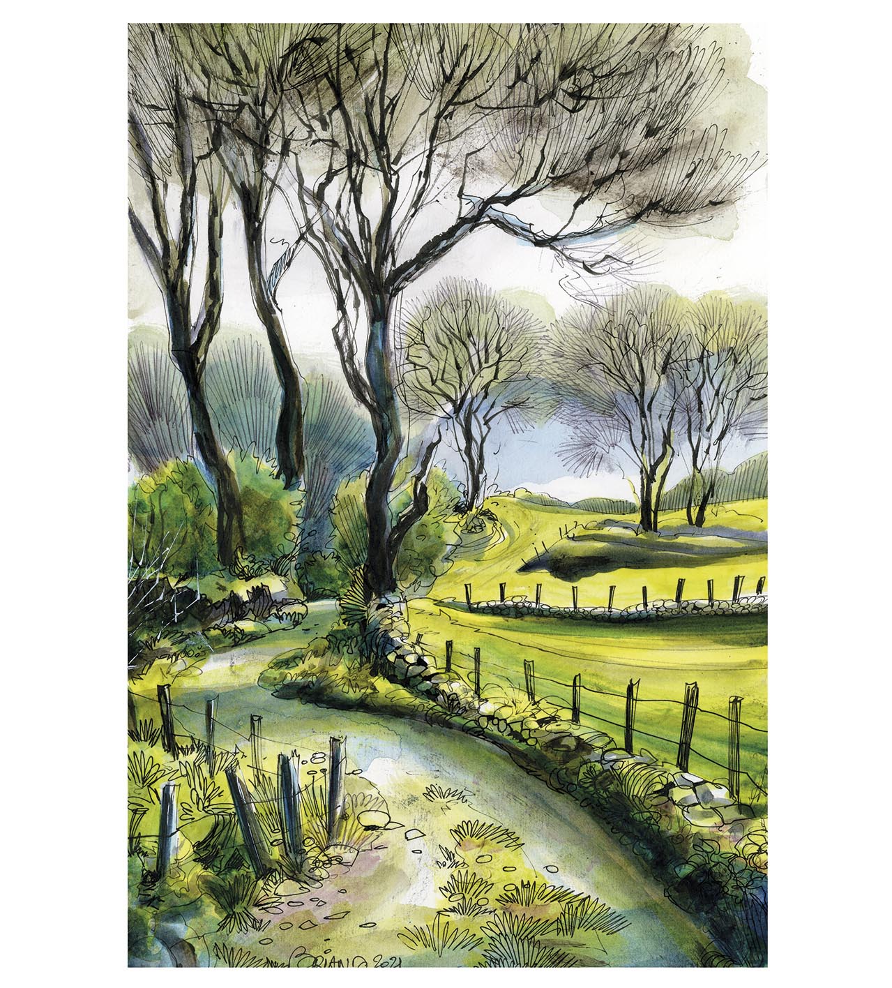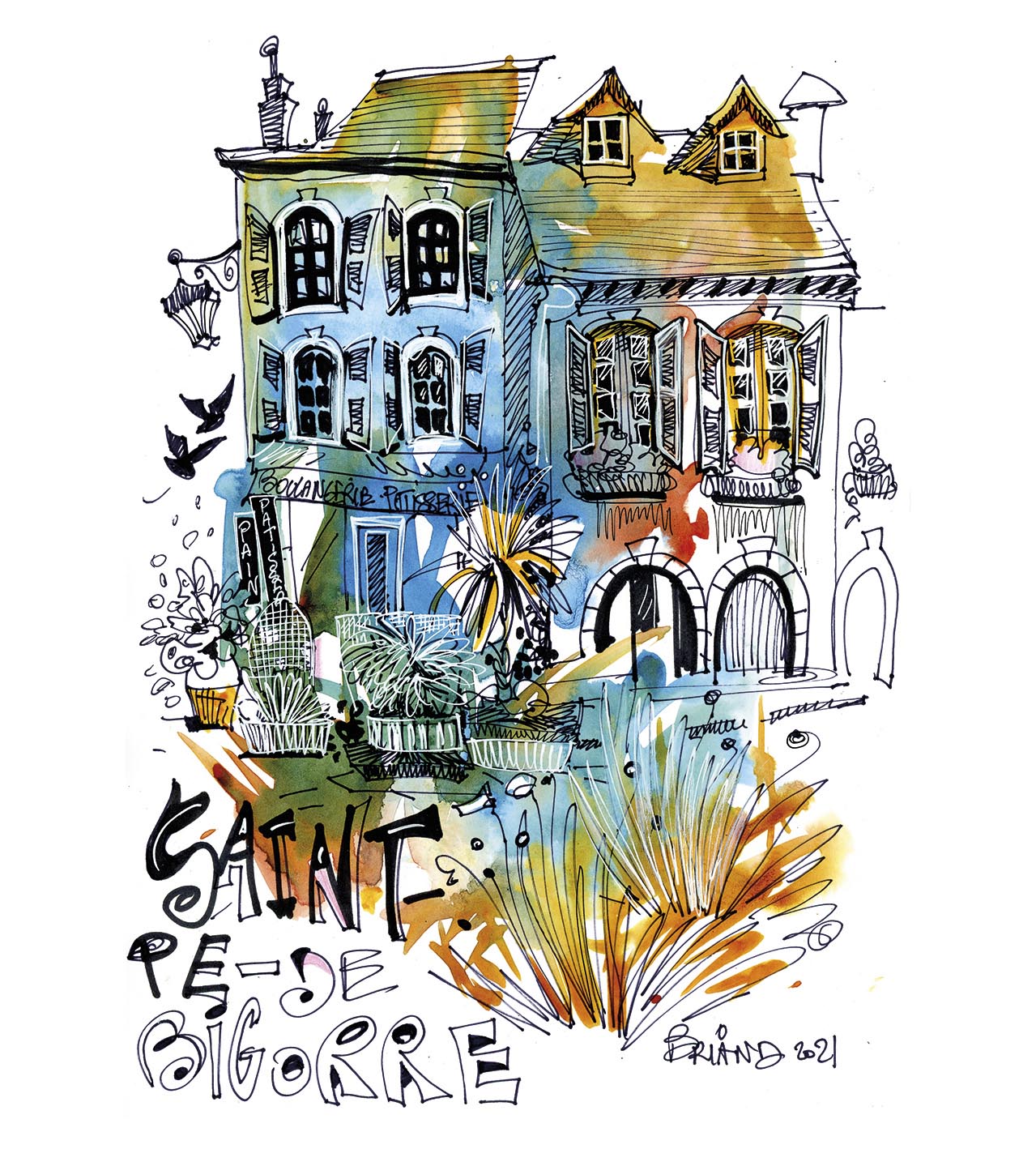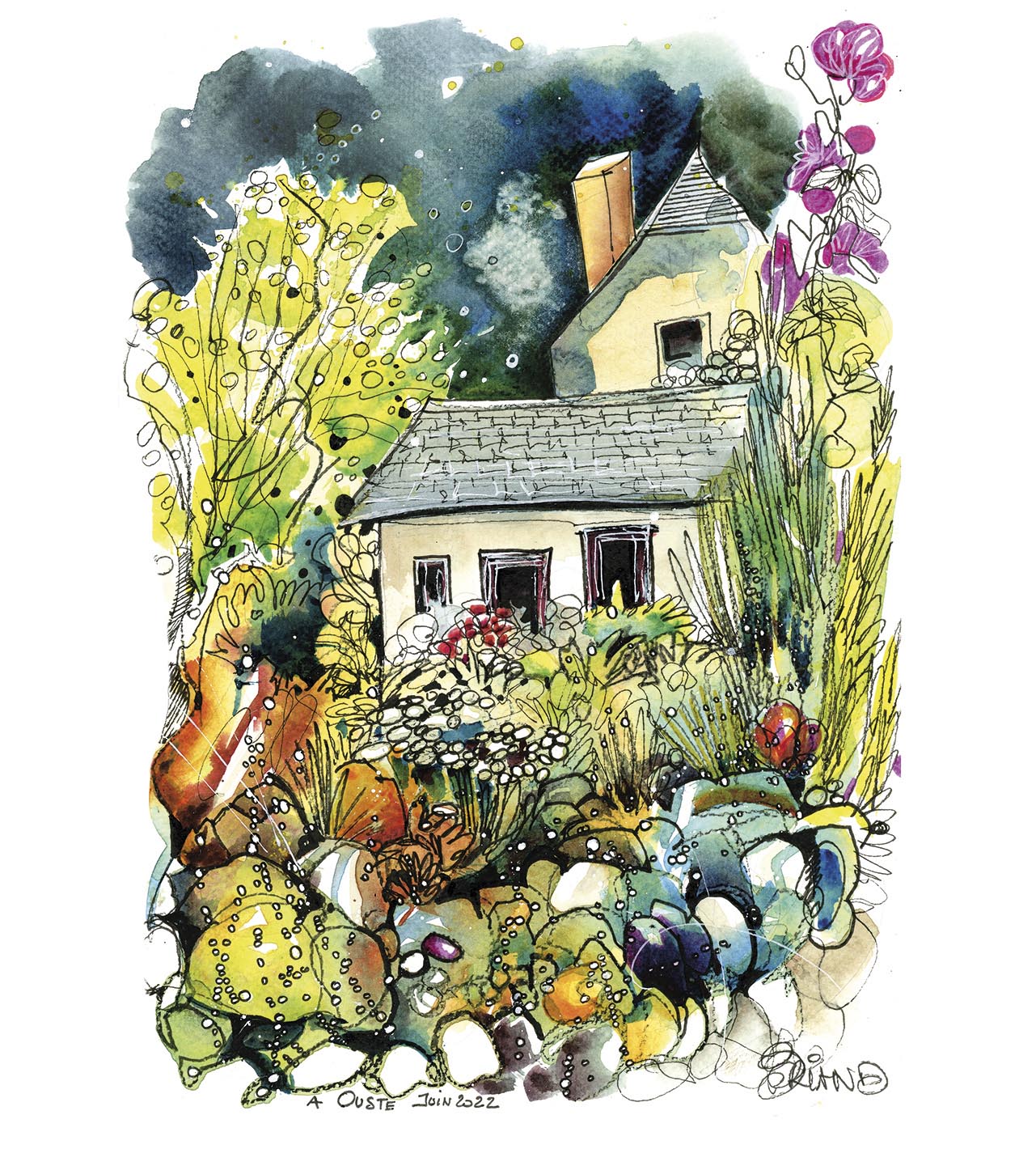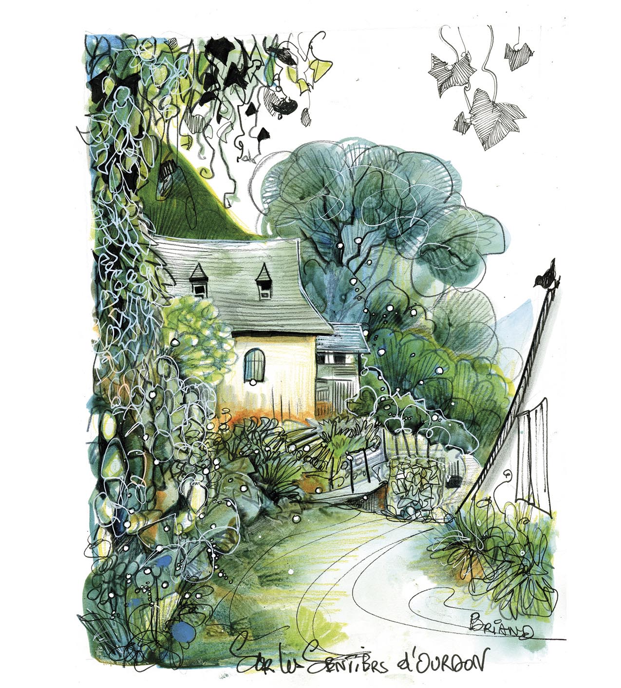 Depuis qu’elle vit en Bigorre, Maud est tombée sous le charme des Pyrénées : « J’adore peindre des paysages de prairies, des montagnes, des vieilles pierres, des granges… », nous dit-elle. Au cours de notre discussion, c’est une véritable déclaration d’amour aux Pyrénées que Maud nous a livrée. Ses mots étaient tellement emplis de justesse et de poésie que nous avons décidé, de notre propre chef, que c’était la plus belle déclaration d’amour à nos montagnes que nous avions entendue depuis longtemps. Jugez plutôt : « Avant toute chose, ce qui me prend aux tripes, c’est la nature, et l’endroit où je trouve le plus de naturalité, c’est dans les montagnes pyrénéennes. C’est là où j’ai envie d’être, c’est ça que j’ai envie de peindre : que ce soit du lichen sur les vieilles branches des forêts, des plantes accrochées, des arbres, des fleurs, une montagne ou un massif… Tout m’intéresse, j’ai envie de tout dessiner, tellement envie de tout dessiner que parfois ça me bloque ! (rires). Je trouve que tout est beau, je parcours les bois et me sens vraiment libre, je ne m’ennuie jamais une seule seconde. J’écoute les oiseaux, les bruits de la nature, je peux dessiner pendant plusieurs heures et voir arriver devant moi une martre, un renard ou un chevreuil… Je pars sur les sentiers des Pyrénées, je trouve un coin qui me plaît, et je me pose pour peindre ce qu’il y a autour de moi. Tout simplement ».