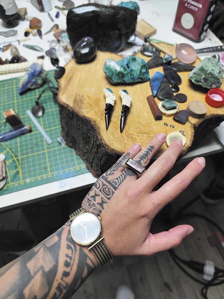 La vie d’Audrey est racontée sur sa peau. Exemples : « Le tatouage sur ma jambe gauche est un hommage à mon frère décédé. Sur le bras droit, j’ai des motifs qui représentent la spiritualité, la force et la sagesse ». Des projets en cours ? « Je vais finir la jambe droite, puis le dos… jusqu’à ce que tout mon corps soit recouvert ». Avez-vous un tatouage qui vous tient particulièrement à cœur ? « Celui que j’ai sur la main : je l’ai fait avec mon conjoint, on a tous les deux le même. C’est un tatouage qui parle de notre amour, de nos enfants ».
