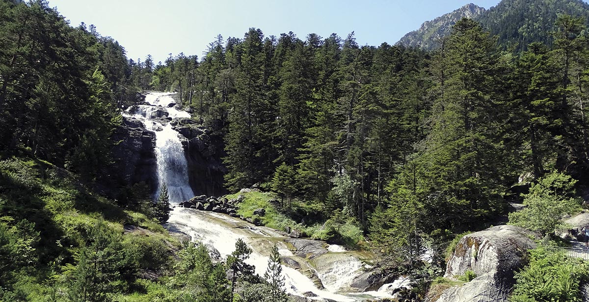 Le Mag, vous vous en doutez, a bien sûr choisi de faire la balade jusqu’au pont Napoléon, histoire de repérer correctement les lieux avant d’y envoyer ses fidèles lecteurs. Pour cette rando estivale, nous nous sommes levés tôt pour profiter de la fraîcheur matinale ; après avoir traversé Cauterets, on se gare à la Raillère, en face des thermes, et on part à l’aventure. Première remarque : si vous comptez venir dans le coin, pensez à vous chausser de manière adaptée ! L’humidité peut rendre le terrain très glissant. Le chemin, parfaitement balisé, est facile et accessible à tous ; au bout de seulement quelques minutes de marche, bonheur : nous arrivons à la première cascade, celle d’Escane-Gat. Magnifique.