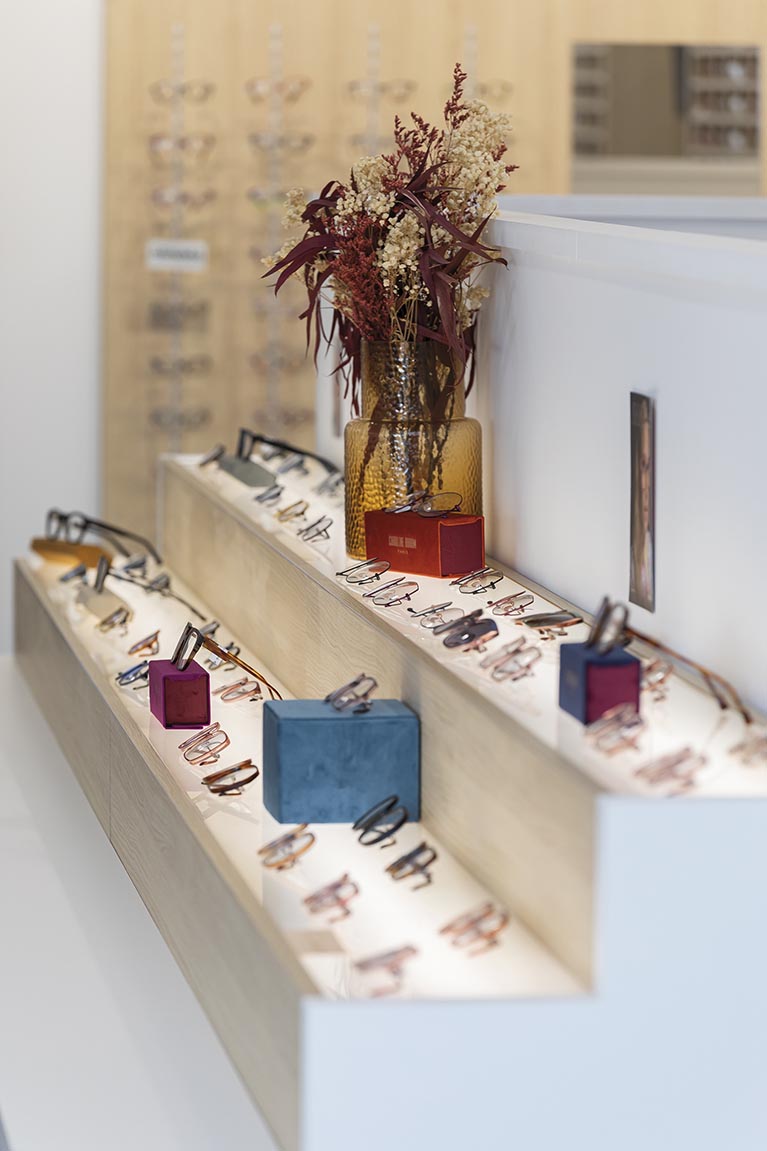 Nous l’avons vu au premier coup d’œil : la passion qui anime le couple pour leur métier est la garantie de disposer de conseils de qualité et d’une technique de fabrication irréprochable. Pas de poudre aux yeux ! Leurs compétences sont complémentaires : Émilie est conseillère visagiste, elle sait déterminer les formes et les couleurs adaptées à votre style et votre morphologie ; quant à Maxime, il a le compas dans l’œil : il taille les verres et assemble sur place toutes les paires de lunettes. Il est également à même de faire des examens de vue poussés, ce qui est très pratique pour faire des ajustements sans avoir à repasser chez l’ophtalmo.