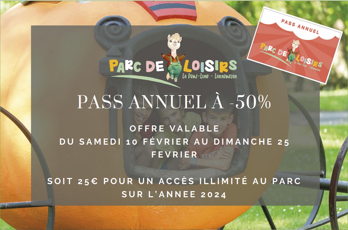 Amis Bigourdans, le Parc de la Demi-Lune a pensé à vous et vous fait une offre que vous ne pouvez pas refuser : pendant toute la durée des vacances scolaires, le pass annuel est à -50 %. Oui, -50 % !