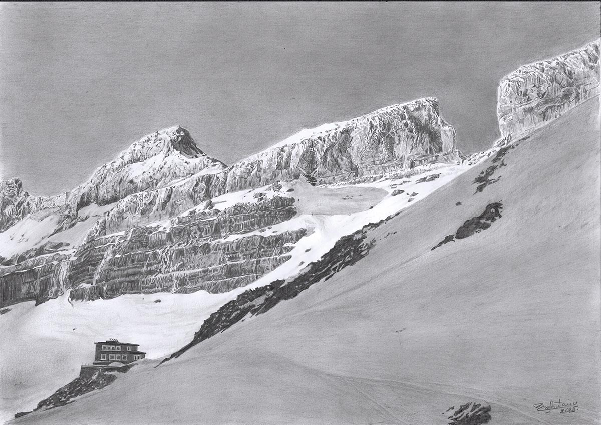 Les œuvres de Pierre sont très variées : il dessine des paysages, des portraits, des animaux, des tranches de vie, etc. : « En ce moment, j’ai plaisir à dessiner les montagnes ». Il manie également le pinceau : « Je peins de l’abstrait. J’aime bien faire de grandes toiles. Quand le crayon me prend trop la tête, je prends les pinceaux, je fais deux ou trois toiles, puis je reviens au crayon (rires) ». Au fait, en tant qu’artiste, de quel œil voyez-vous l’arrivée de l’intelligence artificielle dans le domaine de l’art ? « Je ne sais pas… Je trouve que c’est génial, mais tout dépend de la manière dont c’est utilisé. Ça peut faire peur… L’IA permet de faire ce qu’on veut avec les images ; on se demande comment une telle chose est possible ».