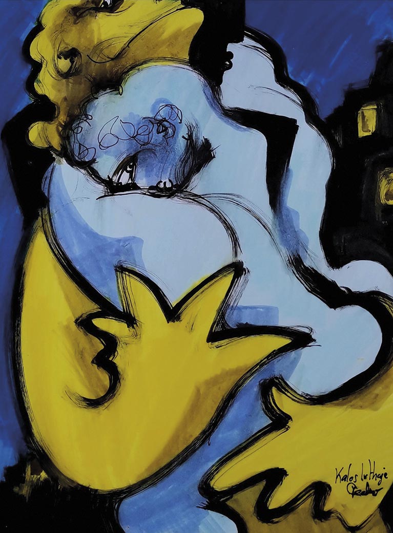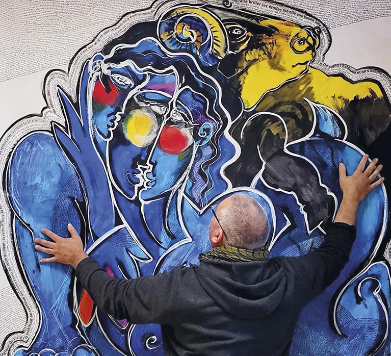 Pedro a grandi à Tarbes. Après avoir intégré les Beaux-Arts de Paris, il décide à 24 ans de devenir prof d’histoire-géo, métier qu’il exerce encore aujourd’hui. L’art l’a toujours accompagné : depuis tout petit (première expo à 5 ans !), il peint, dessine, écrit… Dernièrement, il a réalisé une série de dessins sur la guerre en Ukraine. La vente, organisée à l’Artelier à la fin du mois d’avril, était exclusivement au bénéfice d’associations d’aide aux réfugiés de guerre. Cette série se divise en trois parties : la première, en noir et blanc, est très dure ; elle correspond au choc de la déclaration de guerre. La deuxième, plus « calme », intègre de la couleur ; elle symbolise l’acceptation du conflit et l’accueil des migrants. Dans la troisième, l’espoir renaît, et la colombe de la paix fait (enfin) son apparition. Pedro a également réalisé d’énormes formats : « J’ai pour projet d’aller les accrocher en Ukraine, dans les ruines, nous a-t-il expliqué. Le but est simple : apporter de la couleur, de la gentillesse, de la bienveillance ». Comme une sorte de contre-balance ? « Oui. Un artiste se doit d’apporter du bon de façon aussi simple, directe et naïve que la guerre amène du mal ».