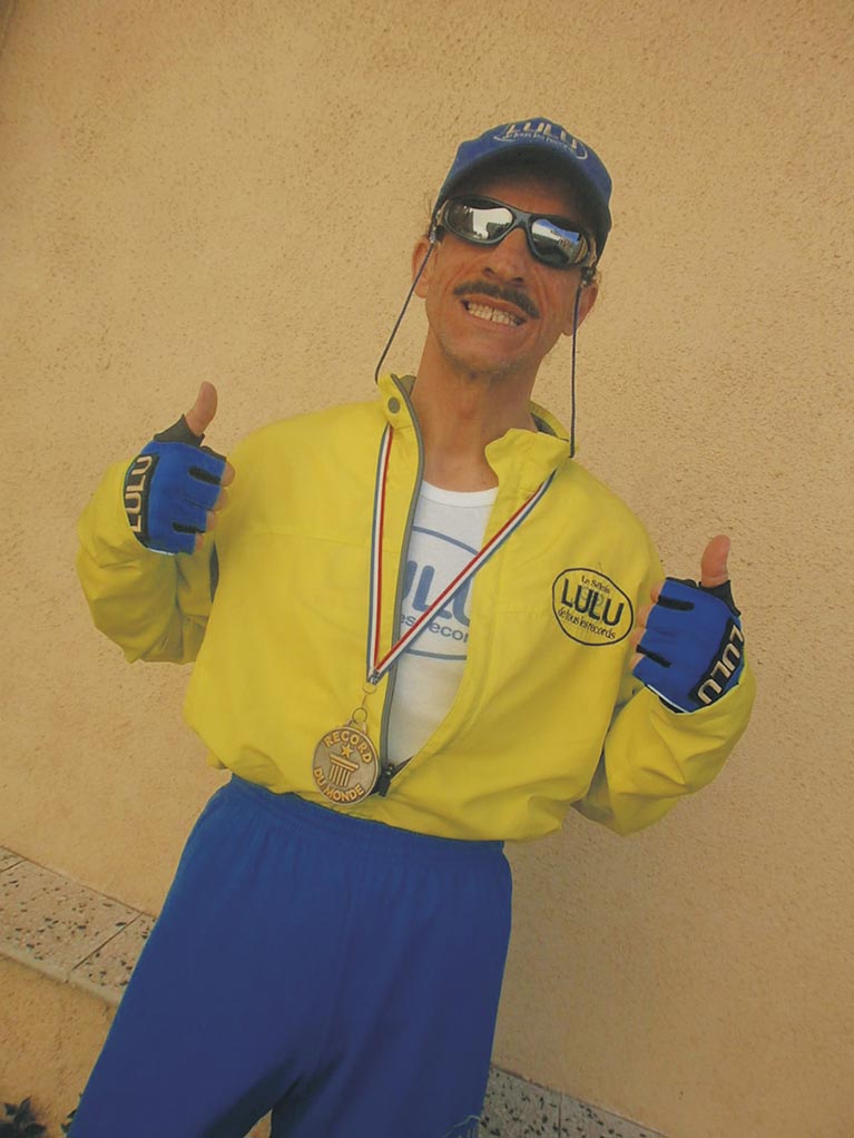 Dans les années 90, Lulu fait ses premières compétitions ; il court ses premiers marathons et enchaîne les performances. Puis un jour, en 2003, l’émission L’été de tous les records débarque à Sète. Lulu y bat le record du « saut dans le maillot » : « Ça a été comme un tremplin, ça m’a révélé mon côté fantastique qui ne demandait qu’à sortir ». Il a alors enchaîné les records : record du nombre de pailles dans la bouche (261), record du nombre de pinces à linge sur le visage (133 !)… Puis il y a eu le record du 100 m à reculons : « Je l’ai battu, puis je me suis pris au jeu : j’ai fait 200 m à l’envers, puis 1000 m, puis 10 000 m… » Et puisque Lulu ne fait jamais les choses à moitié, il s’est mis à gravir les cols de légende en rétro-running.