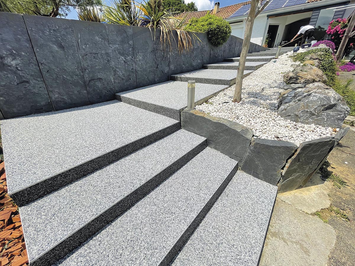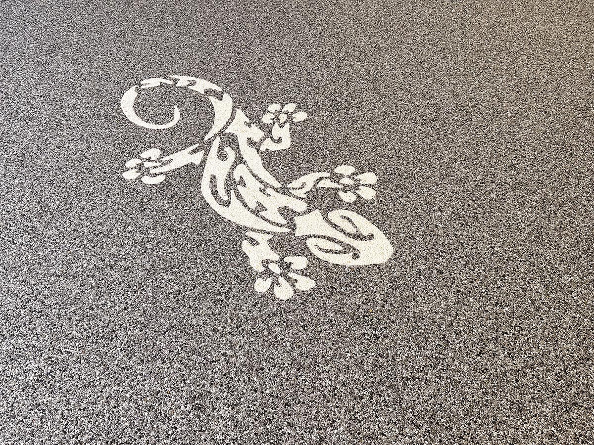Autre point fort : en ce qui concerne la moquette de pierre, il est possible de faire apparaître le motif de votre choix. « Grâce à une découpe laser, on peut faire tout ce qu’on veut », nous a expliqué Marc-Olivier. Ah oui, vraiment ? Tout ce qu’on veut ? « Oui, pratiquement tout ! On peut faire des motifs géométriques, un soleil, le Pic du Midi, le portrait de votre chien… absolument tout ! ». Il n’en fallait pas plus pour donner à la rédaction du Mag un tas de bonnes idées : sur notre sol en résine, on souhaiterait une aubépine nommée Joséphine qui boit un café sans caféine, pendant que Kevin dessine une scie égoïne pour le concours Lépine, et que Céline piétine une épine remplie de nitroglycérine. C’est décidé ! En ce qui vous concerne, amis lecteurs, si vous avez besoin d’inspiration, vous pouvez compter sur Marc-Olivier pour vous conseiller grâce à son savoir-faire et son expérience unique en la matière.