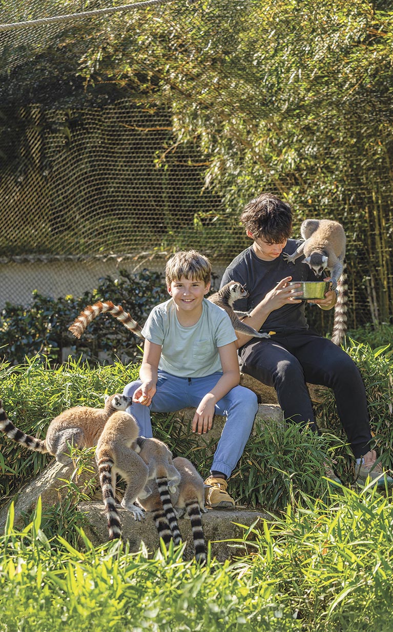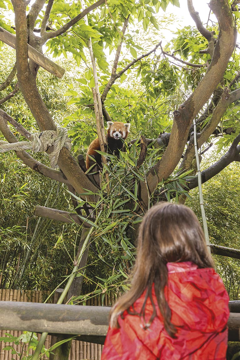 Ici, le mot « dépaysement » prend tout son sens : le visiteur est invité à voyager à travers les cinq continents. Vous traverserez l’Asie avec ses tigres blancs et ses pandas roux, l’Afrique peuplée de zèbres et de lémuriens, l’Amérique avec ses ocelots et ses perroquets, l’Australie et ses kangourous en liberté, et même l’époque des dinosaures avec une exposition permanente unique en France ! Ce voyage immersif s’appuie sur une architecture soignée et des aménagements paysagers : chaque zone est représentée dans son identité avec le souci du détail. Le visiteur est ainsi plongé dans des décors variés, permettant de découvrir en profondeur l’écosystème de chaque animal qui vit ici.